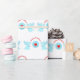 Feriados anjos fofos em papel de embrulho de presente de fundo branco. Anjos da trombeta turquesa clara anunciando Felizes Férias com um coração no meio.