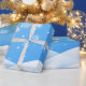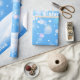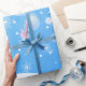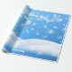 Papel de embrulho de Natal com desejos, personalizado, Família Assinatura, Montanha de Neve de Natal e flocos de neve brancos em fundo azul nevado. Feliz Natal e Ano Novo, lindo papel de embrulho para presentes de Natal adoráveis. Papel de embrulho de Natal decorado com símbolos mágicos de Natal, flocos de neve de inverno, padrão de elementos de presentes de feriado, boneco de neve, árvore de Natal, bolas de Natal, flocos de neve e mais personagens festivos. Design gráfico original e moderno. Personalize-os adicionando nome ou texto de desejos.