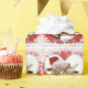 Uma fotografia de fecho adorável mostrando um par de cabras fazendas afetuosas que se nuzem e se amontoam umas às outras, moldada em forma de dentro com flocos de neve. Este belo papel de embrulho de Natal é perfeito para os criadores de cabras de passatempo!