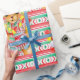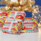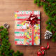 Colorida Llama com chapéu de natal, lenço verde e vermelho e luzes de natal embrulhando papel. Arte original de lama aquática projetada por Sarah Trett para www.mylittleeden.com
