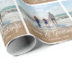 Adicione um detalhe final ao seu presente com este papel de empacotamento personalizado. Ele apresenta um padrão da sua foto favorita de praia da família com Seas e Saudações em uma fonte branca moderna. Personalize com seu nome de família e o ano.