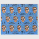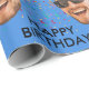 Papel de embrulho de festa de aniversário personalizado engraçado personalizado com um corte de rosto e a idade. Design com confetti, um fundo azul e uma mensagem de aniversário feliz. Para alterar a cor, clique no botão para editar o design. Para fazer o recorte da foto, você pode baixar qualquer aplicativo móvel gratuito ou usar Canva ou Photoshop. O fundo precisa ser transparente ao carregá-lo.