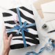 Convites de festas de aniversários de safari de impressão de zebra branca preto-chico. Favoritos para festas de impressão zebra. decorações de festas de stripe de zebra