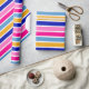 Papel de enrolamento vívido de Festa de aniversário com padrão de distribuição colorido. Design moderno e vívido, brilhante com faixas azuis, amarelas e cor-de-rosa. Excelente para comemoração de aniversário para crianças ou adultos, piquenique, Páscoa,...