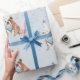 Um cachorro touro bonitinho numa design de presente de aniversário. Um fundo azul com manchas prateadas.