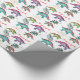 papel de embalagem de dinossauros coloridos e agudos pintados com aquarelas