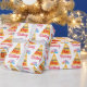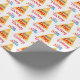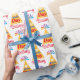 Festa que embrulha papel personalizado para enrolar todos os presentes de aniversário. Ser formas gráficas vermelhas, azuis, laranja, amarelas e roxas com palavras fará com que seja notado.
