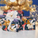 Embale presentes lindamente com este papel de embrulho floral boho, apresentando flores elegantes brancas, douradas, rosadas, vermelhas e roxas em azul escuro. Ideal para aniversários, Dia das Mães, chá de noiva ou celebrações de primavera. Adicione um toque sofisticado a qualquer presente.
