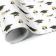 Festa de formatura Vibes Wrapping Paper apresenta bonés festivos, balões e banners em negrito preto e ouro — perfeito para celebrações alegres.