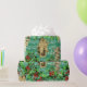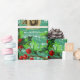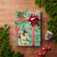 Papel de embrulho de Natal da era vitoriana: anjos, querubs, ramos de bagas ocas, flores de poinsettia, notas musicais de folhas escritas à mão, em fundo verde, para o enrolamento ou a dissociação dos presentes de férias