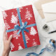 Papel De Presente Festive Red and White Christmas Tree Pattern