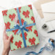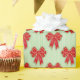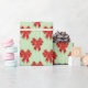 Papel De Presente Festive Red Christmas Bows on Green Stripes