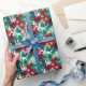 Premium wrapping paper with a vibrant watercolor collage of red poinsettias, green trees, reindeer, snowflakes, candy canes, and gold accents—perfect for artistic holiday gift wrapping.