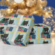 Papel De Presente Festivo Azul Dourado Natal Negro Café