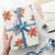 Papel De Presente Festivo Poinsettia e Natal Xadrez
