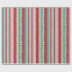 Brilhe seus presentes de férias com este papel de embrulho de listras divertidas e festivas. Padrão geométrico de Natal alegre com uma mistura colorida de listras decoradas, sinos de joias e árvores de Natal. Arte original de Marketa Stengl.