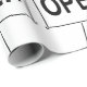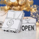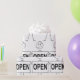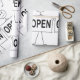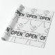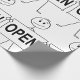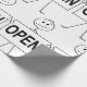 Embrulhe seus presentes com humor com este papel de embrulho único com uma figura de palito segurando uma placa “ABERTO”. O design simples de desenho animado em preto e branco adiciona um toque divertido e leve a aniversários, inaugurações de negócios ou qualquer ocasião especial. Uma ótima escolha para quem ama embalagens criativas e excêntricas com personalidade.