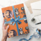 Este é um papel de embrulho com tema do Dia das Bruxas, dominante em laranja, com algumas ilustrações bonitinhas do Dia das Bruxas que consistem em cães e crianças.