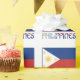 Papel de embrulho de presente com a bandeira filipina. A bandeira é azul no topo, vermelha no fundo com um triângulo branco no lado esquerdo. Cada canto do triângulo tem uma estrela e um sol está no centro do triângulo. A palavra PHILIPPINES está abaixo da bandeira, nas cores da bandeira. Compartilhe sua herança com este papel de embrulho. Excelente para todas as ocasiões.
