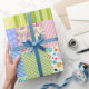 Parece uma colcha de retalhos! Este papel de embrulho fará seu presente parecer único!