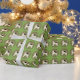 Estilo de desenho animado Fio Fox Terrier cão contra um fundo de coroa escura verde de Natal com realces de morango vermelho. Procure os suprimentos de presentes correspondentes: papel de prenda, papel de tecido, fitas, sacos de presente e caixas de presentes.