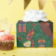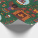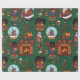This is a vibrant and culturally rich seamless wrapping paper pattern featuring a medley of African American-inspired Christmas and Kwanzaa elements set against a deep, intricate green background. The background is filled with swirling, paisley-like patterns, adding a dynamic texture.