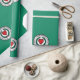 Wrapping Paper with flag of city of Worcester, Massachusetts; green flag with white emblem with red heart in the center