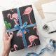Papel De Presente flamingo com folhas de palma de monstera.