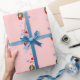 Papel De Presente Flamingo com papai noel chapéu e grinalda