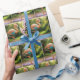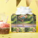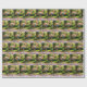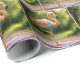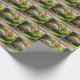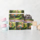 Um flamingo fica graciosamente numa perna sobre um tapete de ioga, vestindo pequenos aquecedores de pernas contra um pano de fundo verde vibrante