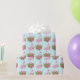 Papel de embrulho com um flamingo de Natal com tema tropical vestindo um chapéu de Santa rosa. Debaixo dos pés está um buquê doce de cana com flores tropicais bonito e amoras rosa. Um punho de Holly no peito.