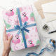 Papel De Presente Flamingo Tropical Leaf Flowers - Rosa claro-padrão