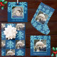 Moderno encontra vintage com este clássico papel azul embrulhando o Natal com um padrão repetido de suas 3 fotos e falso falso falso floco de neve opal iridescente. Três modelos de texto em fontes brancas podem ser editadas para seu pacote de presentes personalizado - espaço para seu nome, o ano e a palavra Joy. Cada fotografia que você carrega é emoldurada por um quadro óptico azul simulado que combina os flocos de neve na moda com um sentimento iridescente. Crie seu próprio pacote de presentes de Natal - apenas adicione suas fotos - que coordena com a coleção de Snowflake Blue Opal disponível exclusivamente em minha loja.