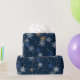 Papel Azul De Enrolamento Com Flocos De Neve Dourados, Prateados E Azuis A Cair