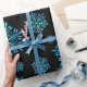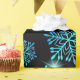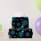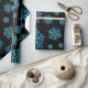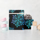 Padrão de inverno mágico. Flocos de neve azuis sobre fundo preto com estrelas.