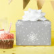 Enrole seus presentes de Natal ou feriados neste clássico papel de embrulho branco com padrão de floco de neve, mude o fundo colorido da cinza prateada para suas cores favoritas para misturar e combinar para uma apresentação divertida.