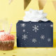 Este flocos de neve bonito em um padrão de fundo azul escuro é perfeito para embrulhar presentes. Há etiquetas de presentes correspondentes disponíveis. Imagem assistida por IA adquirida com uso comercial. Trabalho de arte: CosmicMeta