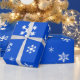 Papel De Presente Flocos de neve brancos negros no feriado azul bril