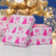 Papel de Embrulho Flocos de Neve de Árvore de Natal Rosa.