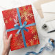 Papel De Presente Flocos de neve de inverno Dourados do Crimson Verm