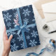 "Flocos de neve elegantes Inverno presente Papel Azul Escuro Insolado" apresenta flocos de neve que caem suavemente através do papel, ideal para adicionar uma elegância gelada ao seu invólucro de presentes.