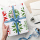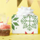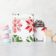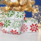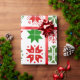 Este papel de embrulho tem uma design de Natal com diferentes flocos de neve em vermelho e verde em filas.