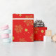 Design de Natal com flocos de neve ouros e estrelas em fundo vermelho