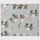 Papel De Presente Flocos de neve prateados, Bolas de algodão, Holly,