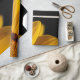 Um design surpreendente com uma flor amarela vibrante colocada contra um fundo preto estrelado, criando um contraste ousado e elegante. A sombra da flor adiciona profundidade e dimensão, aumentando o impacto visual geral. Você deve saber que consegue uma foto!