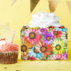 Imagem de flores coloridas de gerbera em amarelo, roxo e rosa. Um vibrante design floral de lindas flores de jardim.