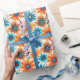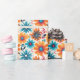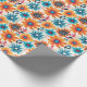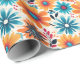 Um fabuloso papel de embrulho de flores de boho. Este design floral vívido dos anos 70 apresenta florais coloridos brilhantes florais coloridos em laranja e azul. Um lindo design de plástico retrô que se destacará da multidão.