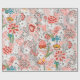 PAPEL DE PRESENTE FLOR DE TULIPAS, FOLHAS FLORAIS VERMELHO AZUL AMAR