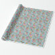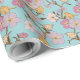 Papel De Presente Florais e Pássaros de Reboque Whimsical - Turquesa