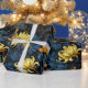 Florais ouros Azuis Escuros Deixam Fundo Preto, Papel de Embalagem de Natal, Papel de Natal, Presente de Natal